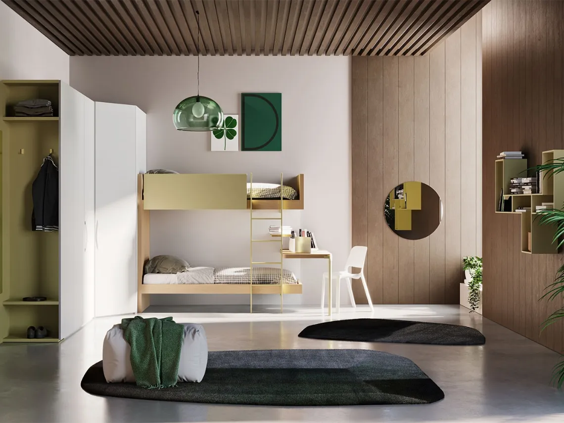 Se cerchi idee creative per arredare ottimamente la stanza dei tuoi bambini, ti presentiamo la Cameretta con letti a castello Start S24 di Clever con finitura in laccato opaco. Clever offre una ricca gamma di elementi accessori da abbinare su misura: troverai letto, armadio, scrivania, sedie e librerie. Porta contenuto estetico e cromie vivaci nella stanza dedicata ai più giovani con questa proposta, una tra le Camerette con letti a castello per ragazzi di Clever. Nella progettazione della stanza dei giovani affidati a noi: nel nostro punto vendita presentiamo tutte le più esclusive composizioni arredative moderne per la loro camera. Questa proposta in laccato opaco ultima ottimamente le doti di praticità e l'estetica della camaretta, poiché è capace di unire ergonomia e sicurezza.